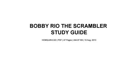 Read BOBBY RIO THE SCRAMBLER STUDY GUIDE Hardcover Gutenberg
